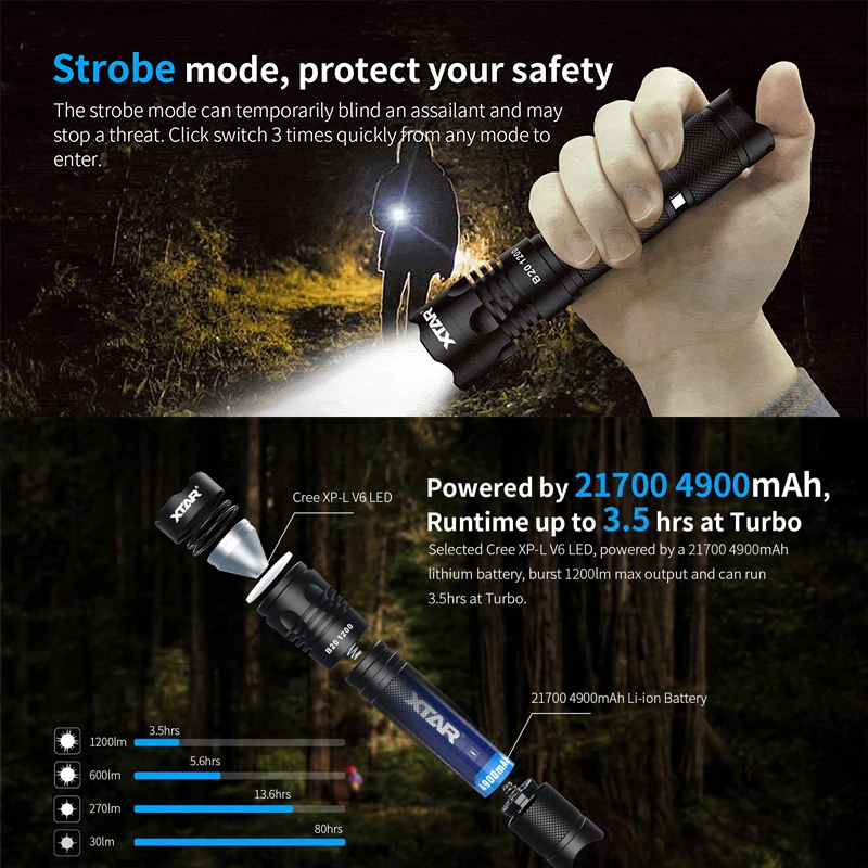 Special Offer XTAR B20 1200 스포츠 손전등 강력한 LED 플래시 라이트 27100 울트라 브라이트 토치 랜턴 핸드 램프 IPX8 방수 손전등 Discount [NEW!!] Today!